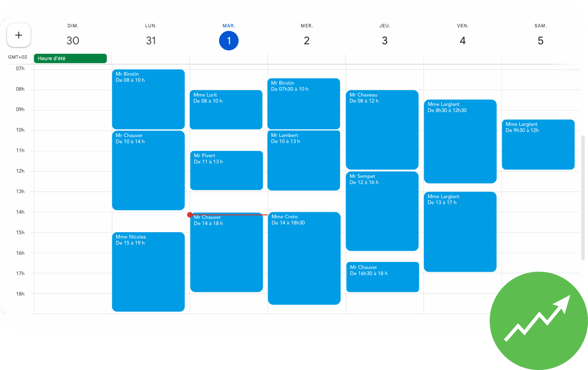 Agenda rempli chaque jour de RDV